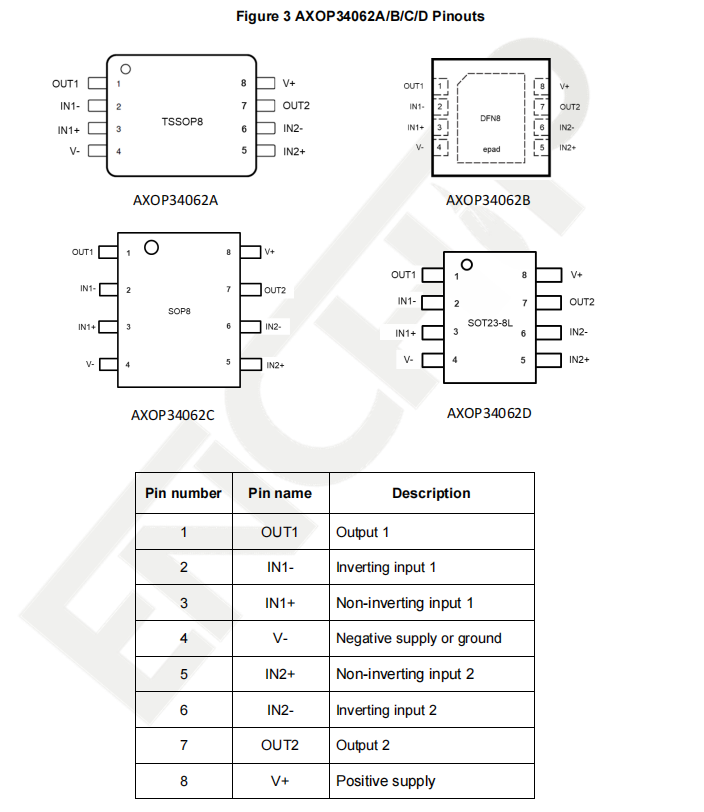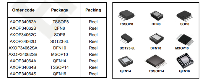 The AXOP34062 (dual), and AXOP34064 (quad) are dual and quad high voltage (3V to 40V) operational