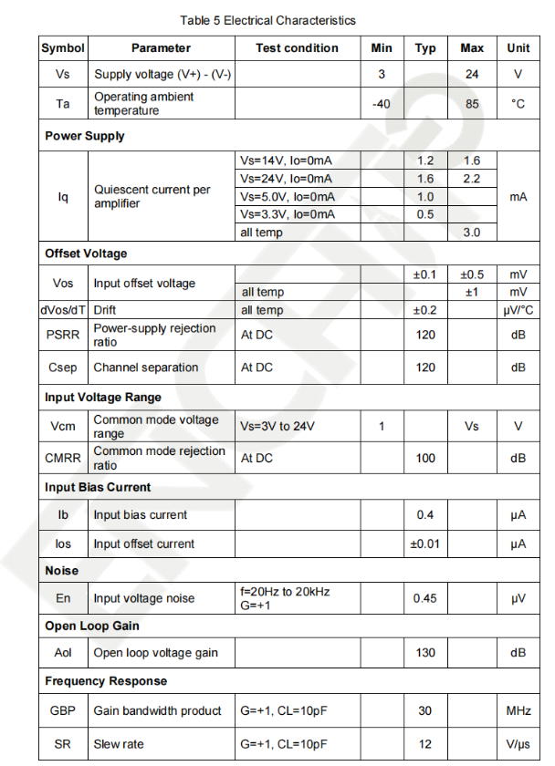 ? Low quiescent current (per opamp): 1.2mA typ @14V, 0.5mA typ @3.3V