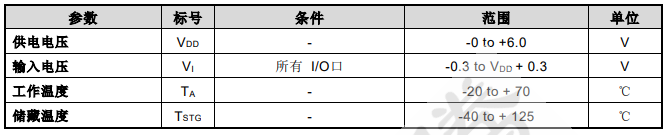 表 6 直流特性(如無特殊說明 VDD = 2.4V~5.5V,Temp = 25ºC)