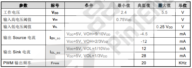 ● 雙路 PWM 輸出,頻率 20KHz
