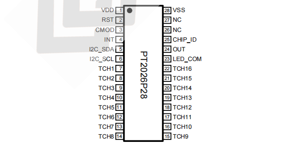 產(chǎn)品名稱:PT2026 16 觸控 I2C 輸出 IC