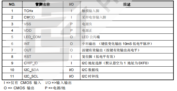? INT:無觸摸輸出高電平,鍵值變化輸出 10mS 低電平脈沖