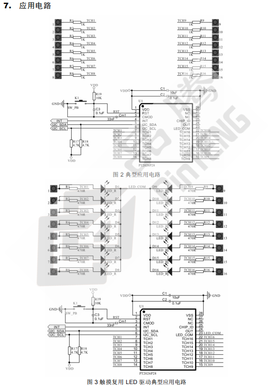 ● 支持觸摸引腳復用 LED 驅(qū)動功能。但應(yīng)用上因 LED 燈寄生電容的存在,會對觸摸靈敏