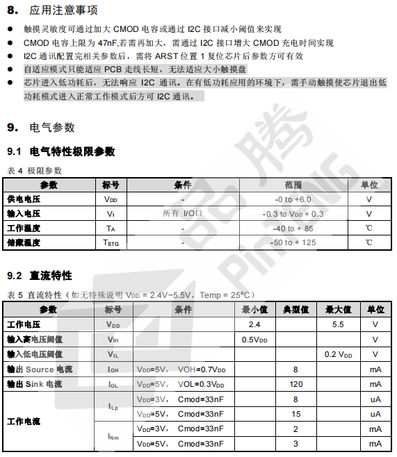 ● 觸摸相關(guān)參數(shù)均可通過 I2C 接口獨立調(diào)節(jié)