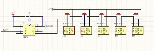 12V供電、主控、五個RGB幻彩燈 、一個按鍵 。