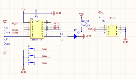 4:板子零件面合適位置放一個433遙控器配對碼按鈕,綁定遙控器一對一控制,