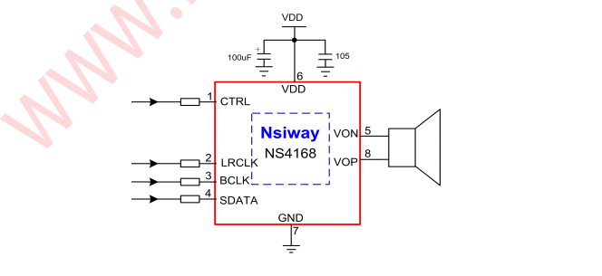 產(chǎn)品名稱:NS4168 2.5W -I2S 數(shù)字輸入單聲道 D 類音頻功率放大器