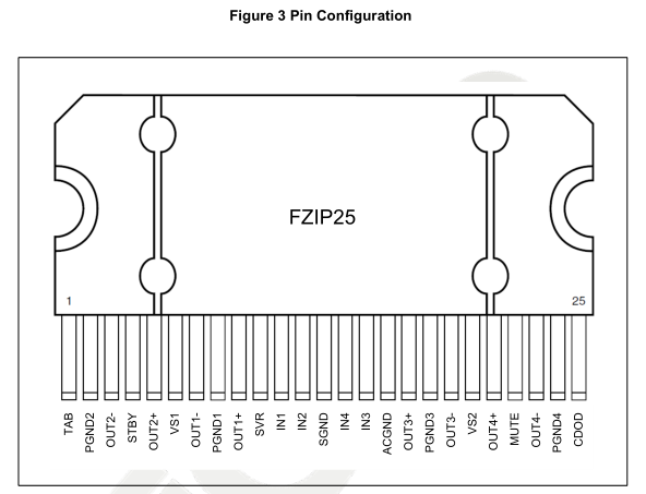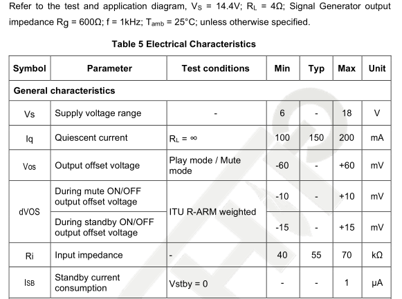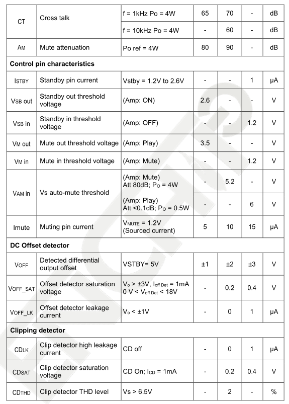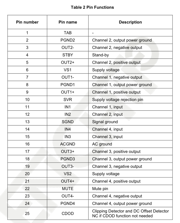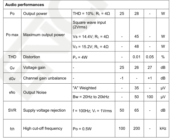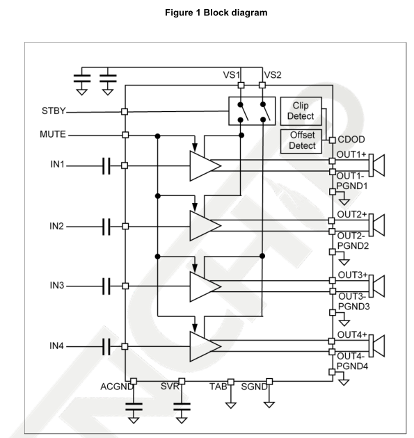 • 4 dependent class AB amplifiers with DMOS Mosfet output stages
