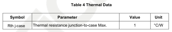 Rthj~case = Thermal resistance from silicon junction to the package casing. (℃/W)