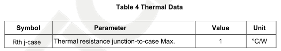 Rthj~case = Thermal resistance from silicon junction to the package casing. (℃/W)