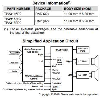 型號(hào): TPA3116D2, TPA3118D2, TPA3130D2