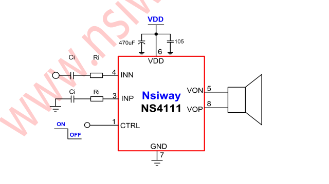 NS4111 內(nèi)置過流保護(hù)、過熱保護(hù)及欠壓保護(hù)功能,有效保護(hù)芯片在異常工作狀況下不被損壞。