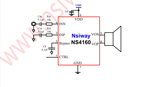 產(chǎn)品名稱:NS4160 5.0W 單聲道 AB/D類雙模音頻放大器附加一線脈沖控制功能